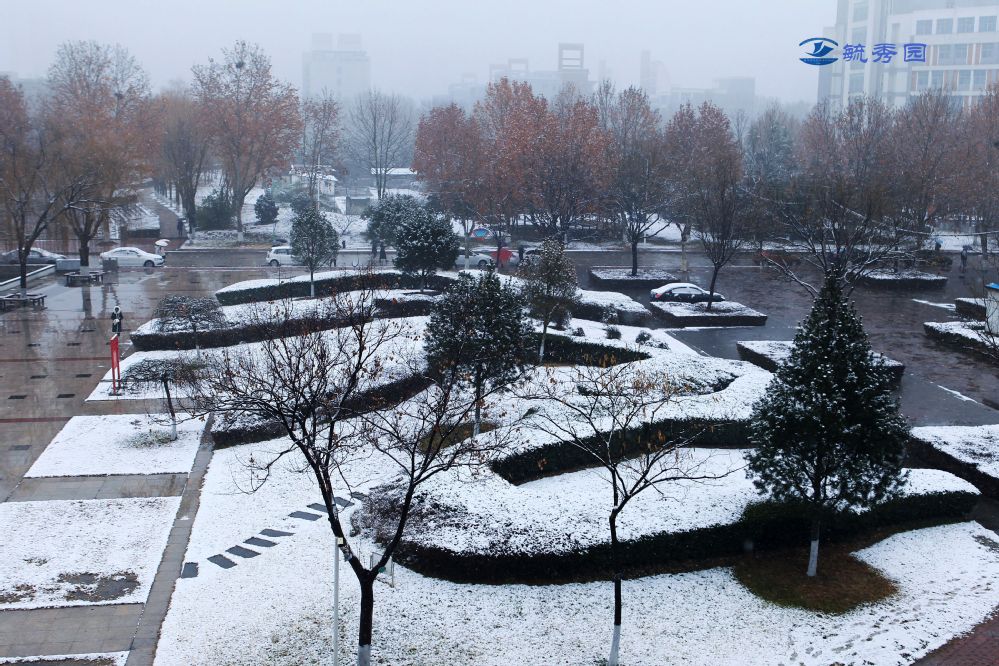 勤政楼湖滨大道旁人工湖1号教学楼毓秀园图书馆前孔子圣像图片拍摄日期:2020年1月7日,焦作初雪