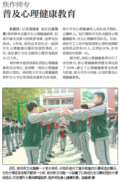 "www.91视频.com" 河南日报农村版对焦作师专普及心理健康教育进行报道