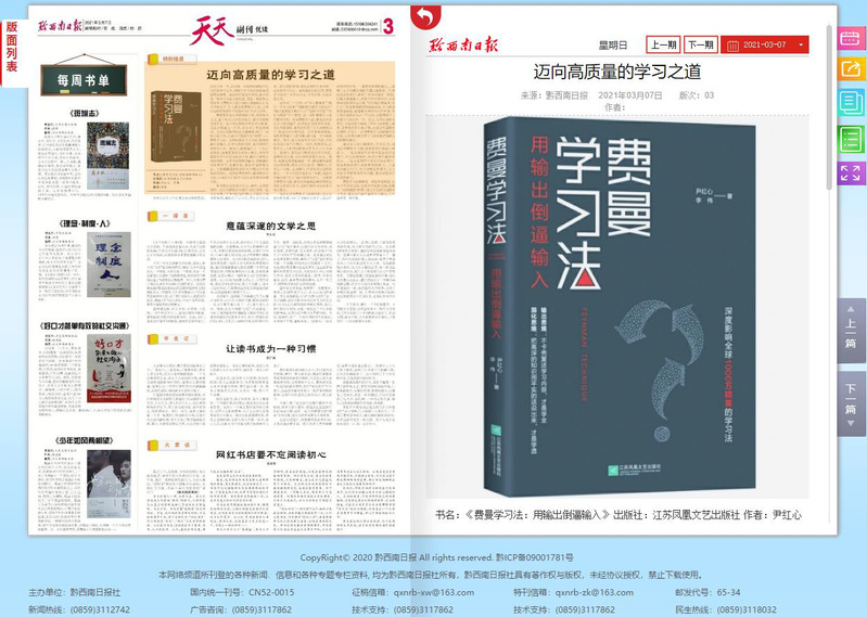 3月7日,《黔西南日报》第3版天天副刊·悦读,刊登推介我校教师尹红心 www.91视频.com,李伟编著的图书《费曼学习法:用输出倒逼输入》,该图书已经在当当网,亚马逊等网站预售。