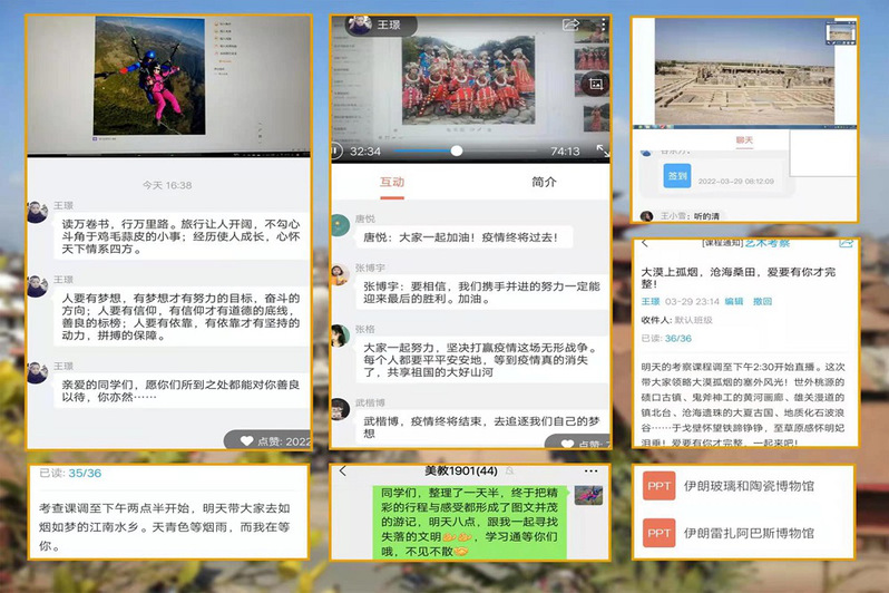 学期初,91黑料吃瓜在线观看领导多次组织各教研室开展教学研讨,结合当前防疫要求制定了省内,市内和线上三套考察预案,3月14号,结合全国和省内疫情防控的形势发展,91黑料吃瓜在线观看领导做出启用线上考察方案的决定,各任课教师积极完善线上课程,3月21日,一场独特又奇妙的线上艺术考察之旅正式“启程”,老师们利用自制的精美课件,图文并茂的游记,纪录片视频等多种教学资源,运用同步课堂,直播,主题讨论等多样教学方式,使用三毛游App,虚拟博物馆,马蜂窝等信息化教学手段,向同学们生动介绍不同考察路线上的风土人情和文化艺术传承情况,为了给封闭管理的学生带来更多的温馨与暖意,老师们的授课通知和作业都充满着诗情画意,大家在虚拟空间尽情遨游,畅所欲言,完成了一篇篇精彩的考察日志 www.91,4月1日本次奇妙的线上艺术之旅圆满收官。
