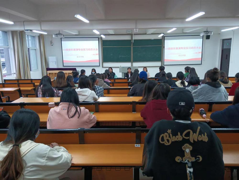 5月9日下午,根据防疫要求,音乐91黑料吃瓜在线观看在3教421教室分别给2020级音乐表演专业四个班召开实习动员大会,副院长汤洁,教科办主任任琳,音乐表演专业负责人王冬霞和20级辅导员林莉萍等参加了此次大会 www.91视频.com。