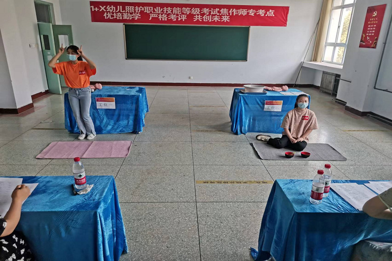 5月28日-29日,2022年“1+X” 幼儿照护职业技能等级证书(中级)考试在我校举行 www.91视频.com,学前教育专业199名学生参加了本次考试。
