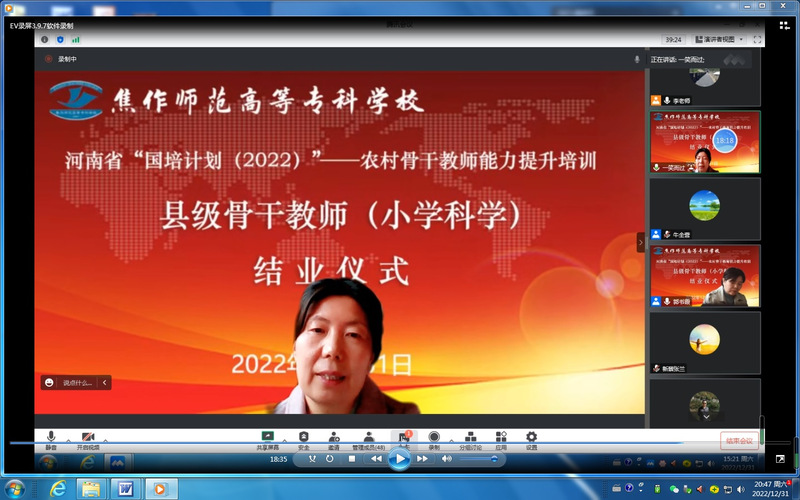 12月31日下午 www.91视频.com,为期13天的河南省“国培计划(2022)”——中西部项目农村骨干教师能力提升培训(小学科学)的第一阶段“集中培训”活动顺利完成,结业仪式在腾讯会议平台隆重举行,理工91黑料吃瓜在线观看院长权玉萍同志,副院长郭书霞同志参加了结业仪式。