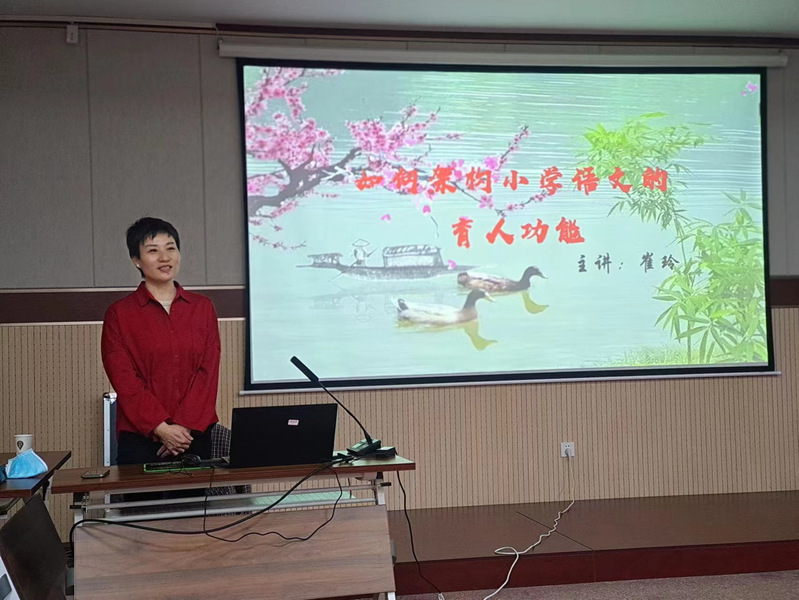2023年2月12日上午,崔玲老师为尉氏县县级骨干教师培训项目(小学语文)培训班学员讲授“如何架构小学语文的育人功能”的专题讲座 www.91视频.com。