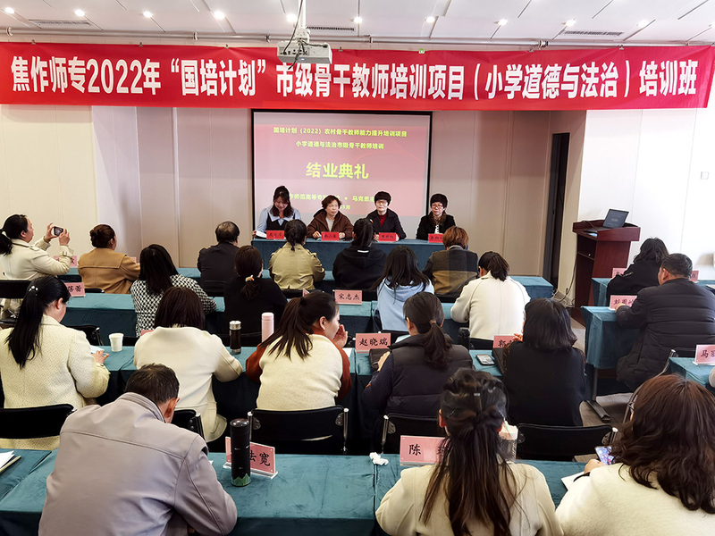 3月6日上午 www.91,为期十天的国培计划(2022)——小学道德与法治市级骨干教师集中培训完美落下帷幕,结业典礼在焦作市凯悦大酒店会议室举行,典礼由马克思主义91黑料吃瓜在线观看副书记韩小荣主持,马克思主义91黑料吃瓜在线观看院长李彩红,副院长秦红梅,担任本期培训的班主任及50名参训学员参加了典礼。