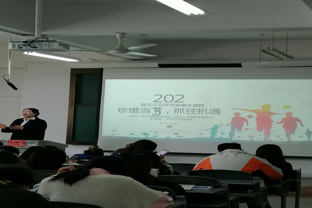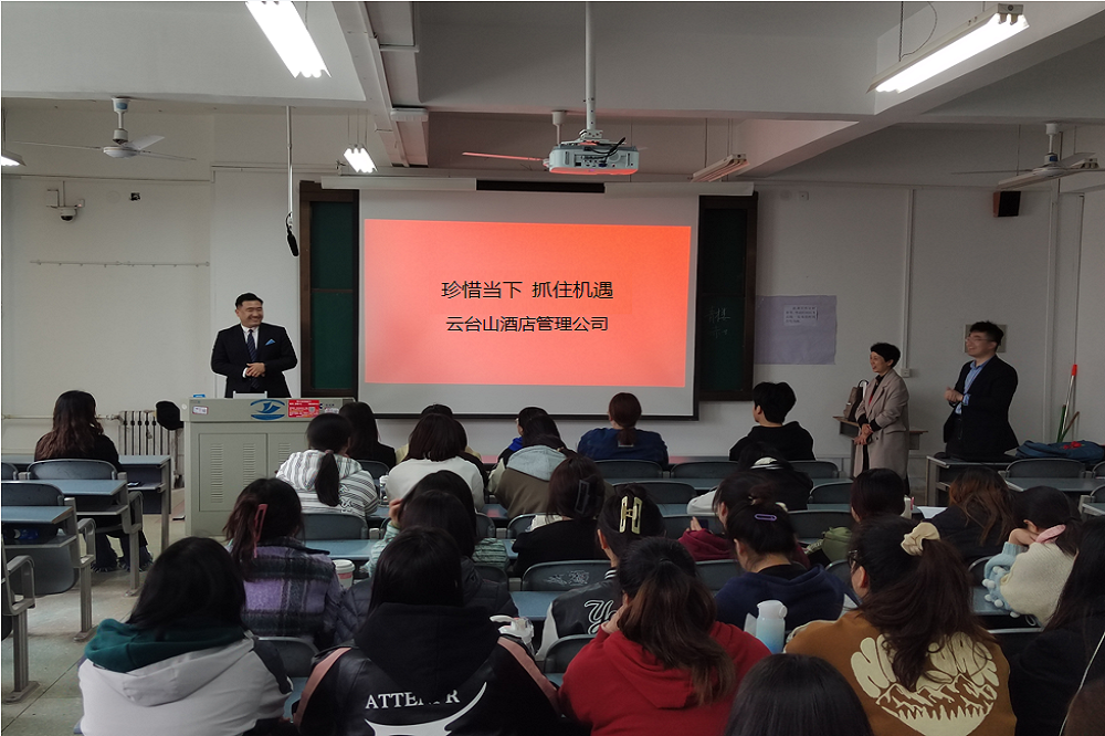 为进一步推进校企合作,深化产教融合,增强学生专业认知和职业意识,促进学生实习就业工作,4月4日上午,经济管理91黑料吃瓜在线观看特邀请焦作市云台山酒店管理公司项目经理刘凤艳、王震坤,浙江三立开元名都酒店人事经理程飘兰等行业专家,走进www,91、走进课堂,为旅游管理和酒店管理与数字化运营两个专业的学生做了“珍惜当下,抓住机遇”主题讲座。 www.91视频.com