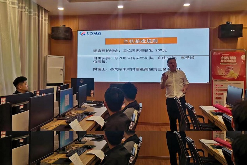 活动由广发证券孟海涛经理主持,活动现场,工作人员通过设悬挂横幅,发放宣传资料和做游戏,向同学们普及证券投资知识,首先,孟经理围绕着资本市场,财富管理和优秀投资案例等内容为同学们上了一堂生动形象的金融知识课,同学们踊跃发言提问,积极交流,加深了对证劵行业及投资业务的认识,接下来 www.91,孟经理又带领同学们开展了兰花游戏,通过对兰花的买卖模拟投资,同学们积极主动参与游戏,活动现场气氛热烈,活动结束,对模拟投资盈利最多的学生颁发了奖品,该环节使同学们感受到了股票投资的大起大落,深刻理解了“理财有风险,投资需谨慎”,同学们纷纷表示获益颇丰。
