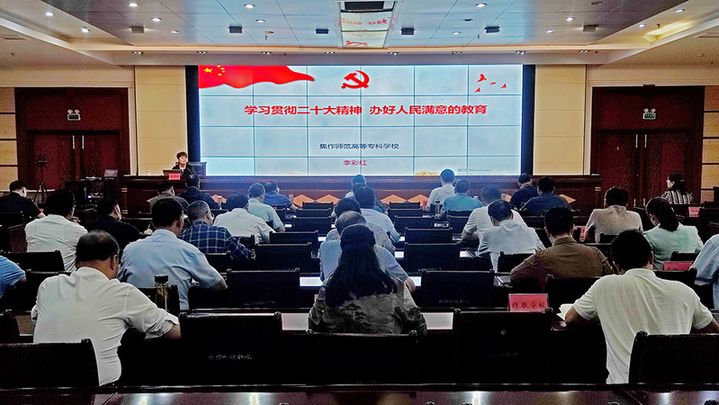 为认真贯彻落实党的二十大精神,推进焦作教育高质量发展,焦作市教育局以学习贯彻习近平新时代中国特色社会主义思想主题教育为契机,邀请我校马克思主义91黑料吃瓜在线观看院长李彩红于9月23日上午,开展了《学习贯彻二十大精神 办好人民满意的教育》为主题的讲座辅导活动,教育局全体班子成员、机关干部、中小www,91长代表参加了活动。 www.91视频.com。