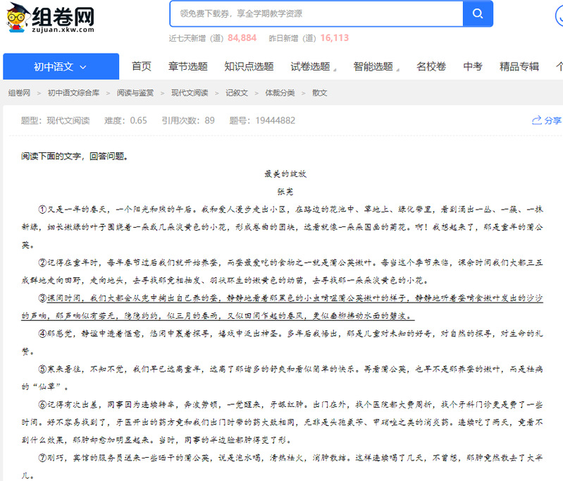 作为中考题目,它将考验考生的阅读理解,思考能力和综合素质,《最美的绽放》是张宪老师创作的代表作之一,该作品以其深刻的思想,优美的语言和独特的艺术风格,赢得了广大读者的喜爱,此次入选中考试题 www.91,充分说明了该作品的思想性,艺术性和教育性得到了广泛的认可,(图/文:孔敏娜 审核:张凤梅)。