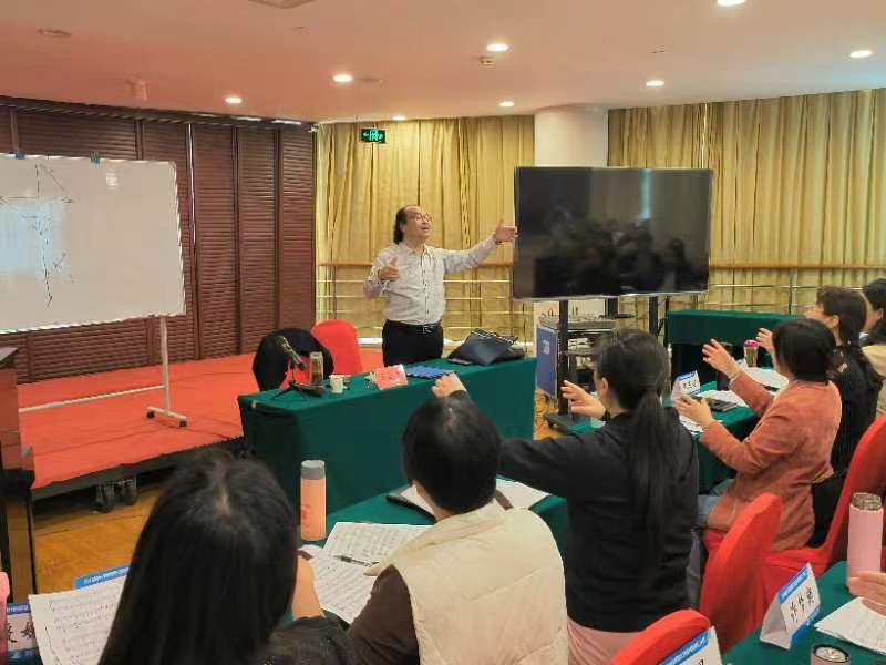 3月27日,在三维戴斯酒店三楼会议室,河南理工大学音乐91黑料吃瓜在线观看的副院长马安平为参加省级骨干教师培训的学员们带来了《合唱指挥技法及实训运用》的培训课程 www.91视频.com。