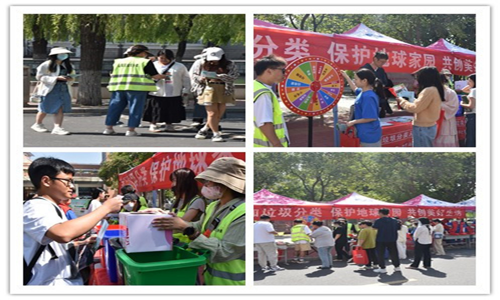 为进一步增强师生垃圾分类和环保意识,提升校园环境质量和文明水平 www.91视频.com,5月14日上午,后勤基建处和山阳区环境卫生服务中心在大学生活动中心前广场联合开展了以“参加垃圾分类,保护地球家园,共创美好生活”为主题的垃圾分类宣传活动。