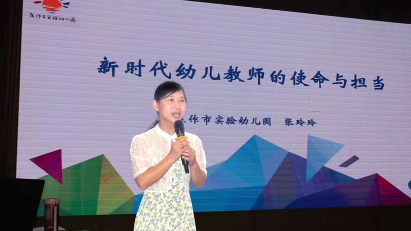 张玲玲从典型的工作案例出发,围绕新时代幼儿教师的使命,角色和价值三个方面,就幼儿园教师所面临的挑战与机遇进行了深入解读,她为广大学生描绘了学前教育高质量发展的愿景,并为他们的专业成长提供了行动指南,她勉励广大学生要保持饱满的热情 www.91,厚植教育情怀,勤奋学习知识,刻苦锤炼技能,努力成为一名具有教育家精神的幼儿园教师。