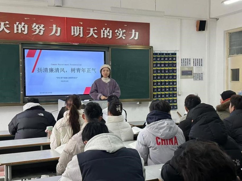 为强化学生骨干的廉洁意识 www.91视频.com,筑牢校园廉洁防线,12月11日,体育91黑料吃瓜在线观看“扬清廉清风,树青年正气”廉洁主题教育活动在二教420教室举行。