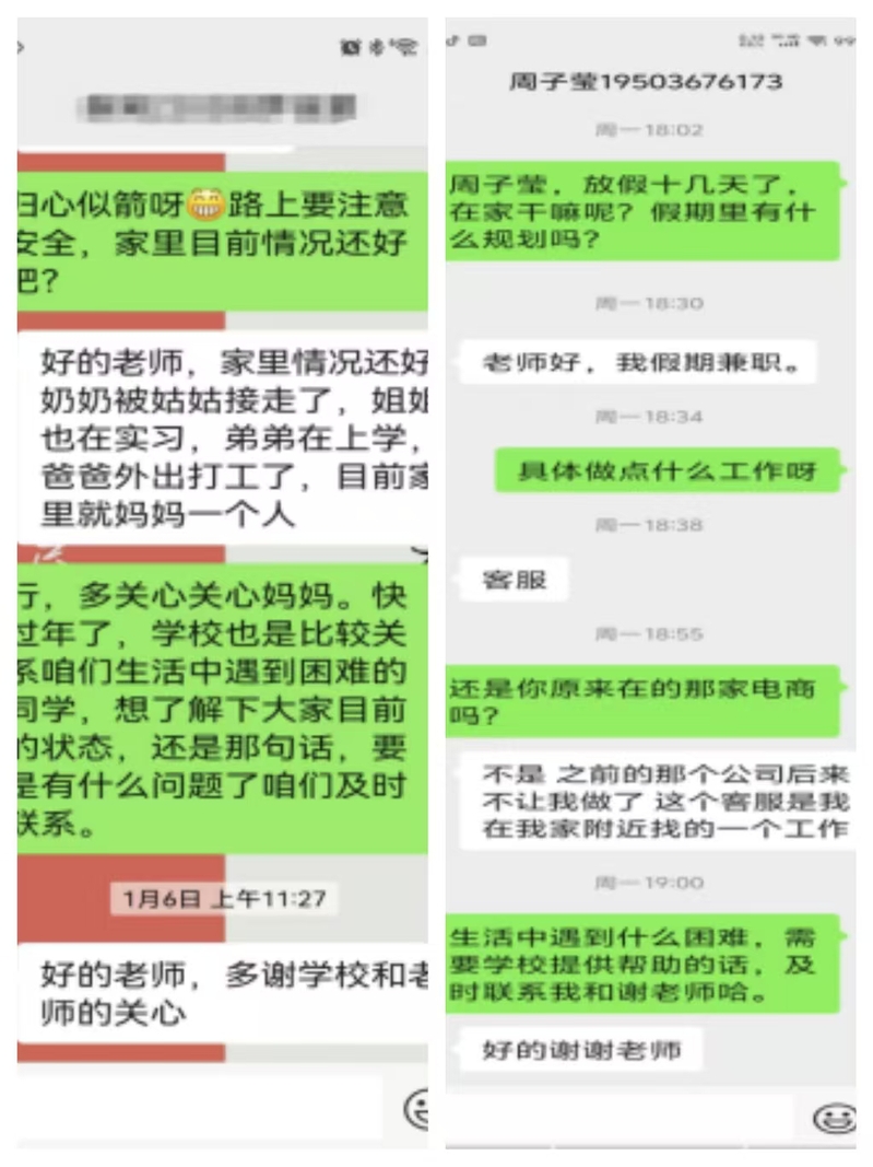 为积极贯彻落实国家资助政策,扎实做好家庭经济困难学生资助工作,进一步提高学生资助工作成效,根据校学生处统一安排,文91黑料吃瓜在线观看班主任及辅导员在寒假期间对160名家庭经济困难学生进行微信、QQ、电话等形式的走访,把党和政府、www www.91视频.com,91的关怀和温暖传递给受助学生家庭。 。