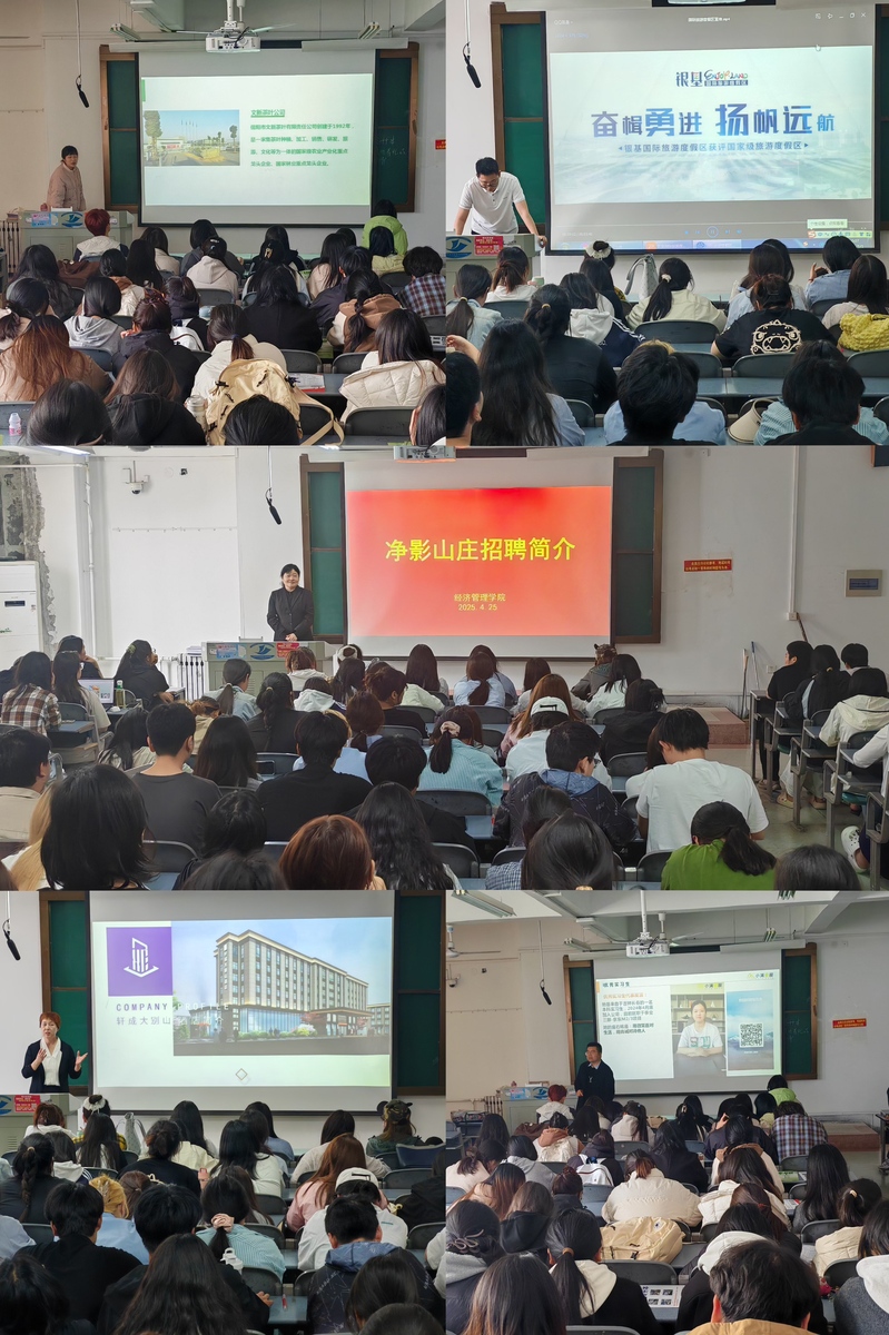4月25日下午,经济管理91黑料吃瓜在线观看在二教413教室举办“实习就业双选会”,河南银基国际旅游度假区管理有限公司 www.91视频.com,信阳市文新茶叶有限责任公司,小满金服金融科技公司,焦作轩成大别山酒店,焦作净影山庄酒店五家企业进校开展招聘,为在校生提供实习岗位,并向应届毕业生开放招聘通道,活动吸引200余名学生参与。