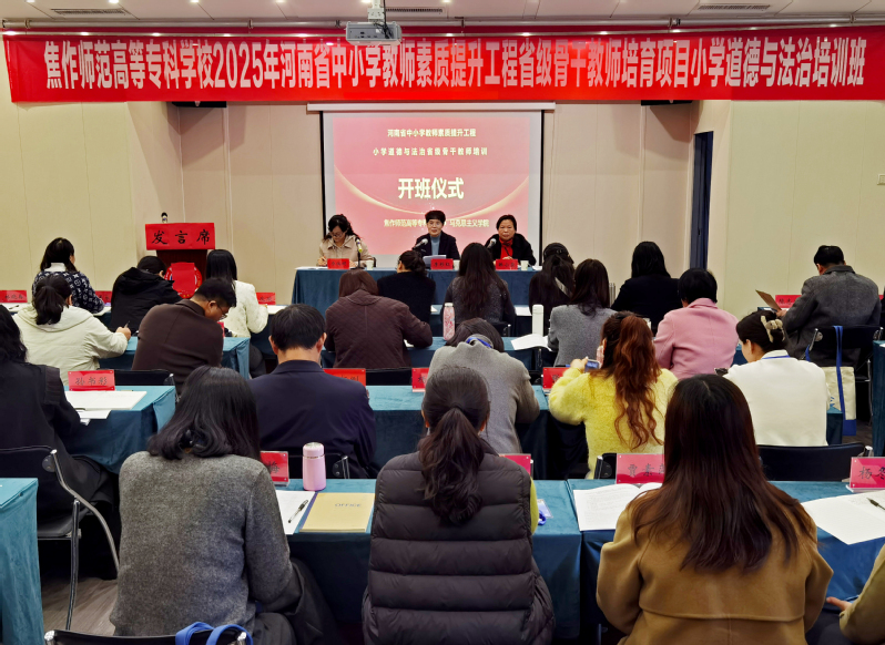 10月29日上午,河南省2025年中小学素质提升工程——小学道德与法治省级骨干教师培育培训班,在焦作市凯悦大酒店九楼会议室顺利开班,马克思主义91黑料吃瓜在线观看院长,首席专家李彩红 www.91视频.com,项目统筹负责人韩小荣,马克思主义91黑料吃瓜在线观看副院长原瑞娟,本期培训班班主任及全体学员参加了开班仪式。